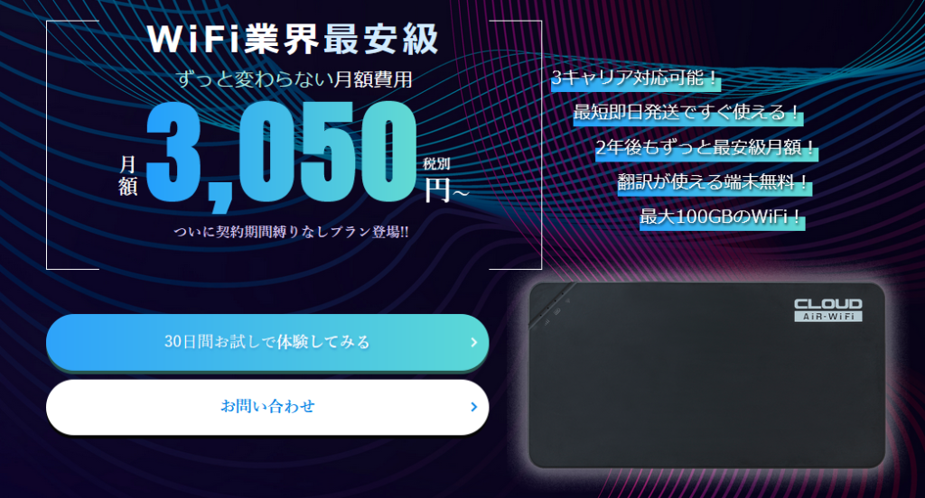 Ex Wi-Fi CLOUD |  業界最安級モバイル ポケットWiFi