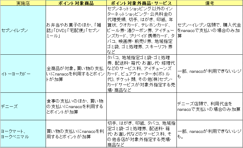 nanacoポイントがつく商品とつかない商品・サービスがあります。以下にまとめました。
