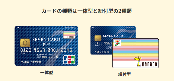 セブンカード・プラスの種類は、nanaco一体型と、nanaco機能は紐付けにしたものの2つです。
