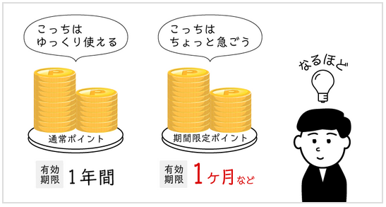 「期間限定ポイント」は キャンペーンなどのボーナスとして得られる ポイントですが、あらかじめ決められた有効期限があります。せっかく貯めたポイントが無効にならないように、定期的にチェックしましょう。