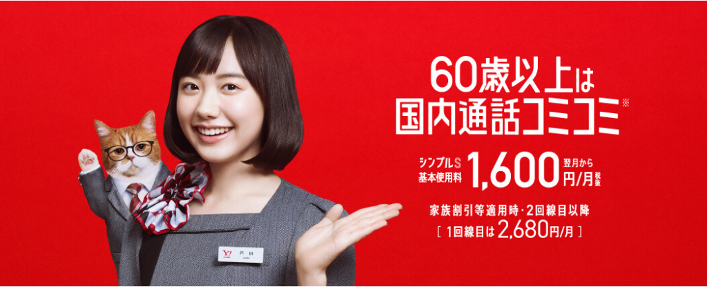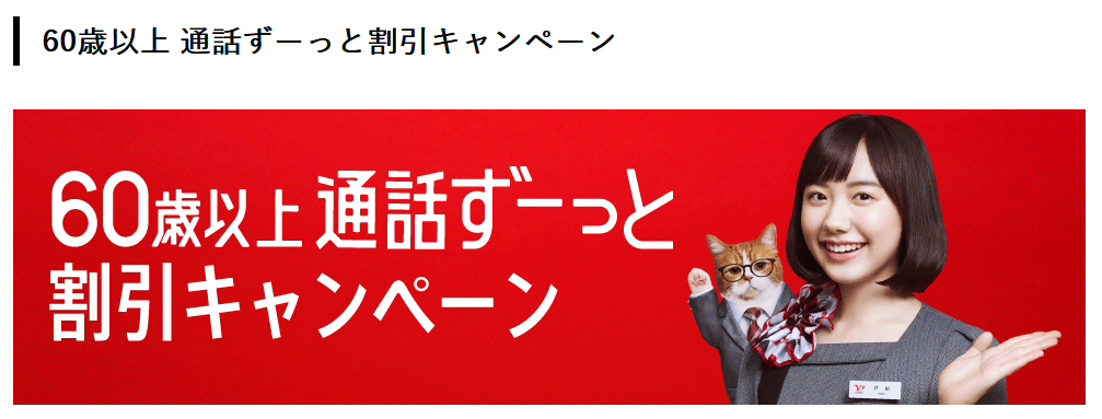 大手キャリアのサブブランドであるワイモバイル。こちらでも60歳以上のシニア向けプランとして、「60歳以上通話ずーっと割引キャンペーン」を展開しています。