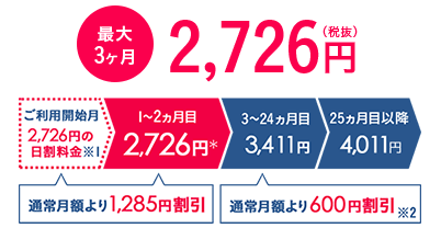 ① 税込2,998円(税抜2,726円)×2カ月=5,996円